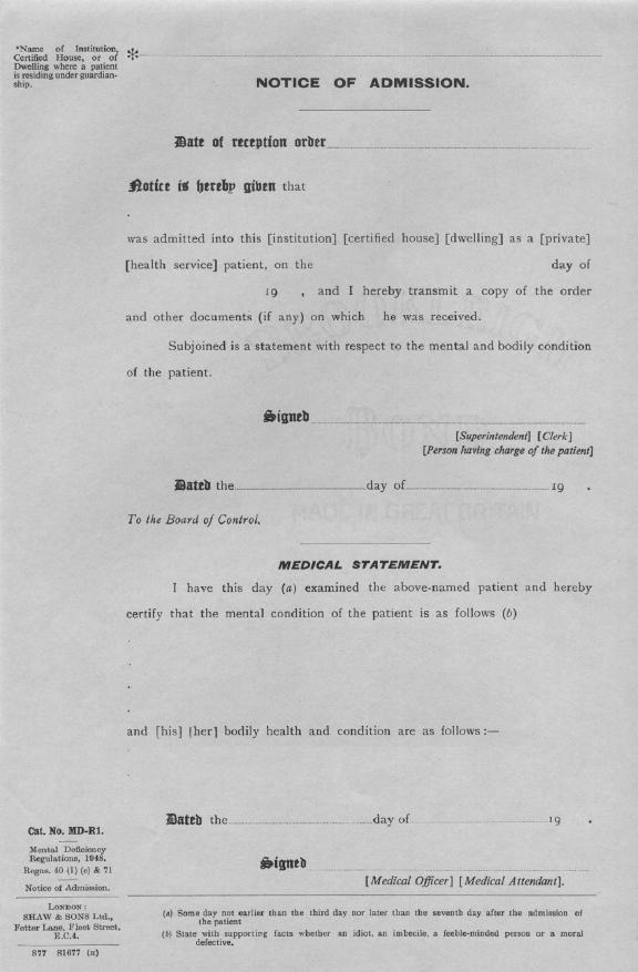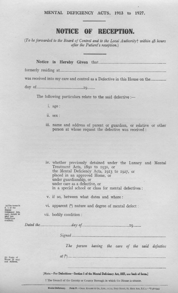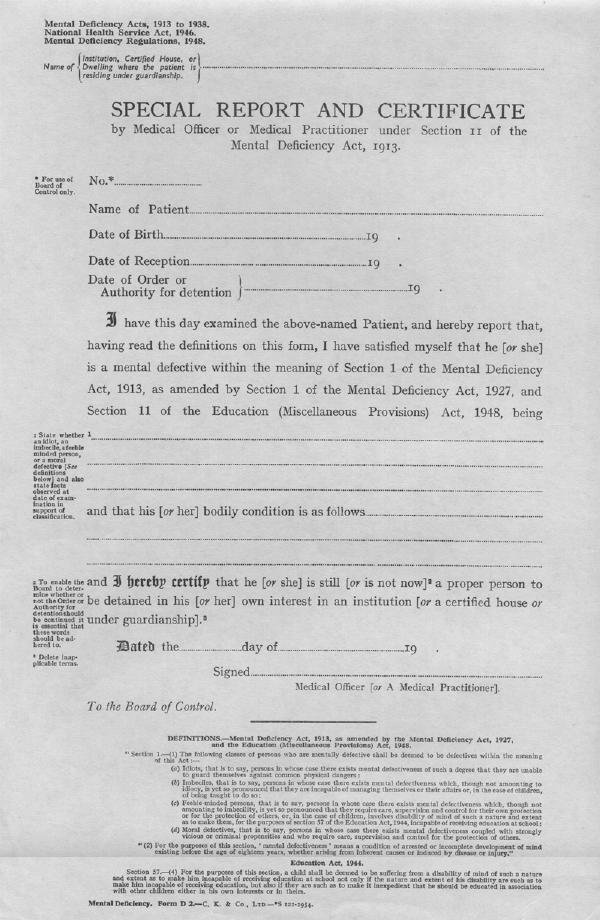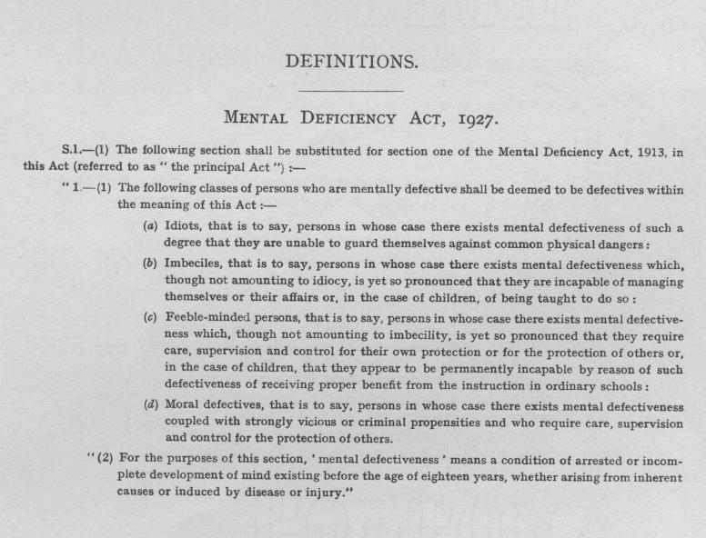 The 1913 Act said that mental deficiency had to exist "from birth or from